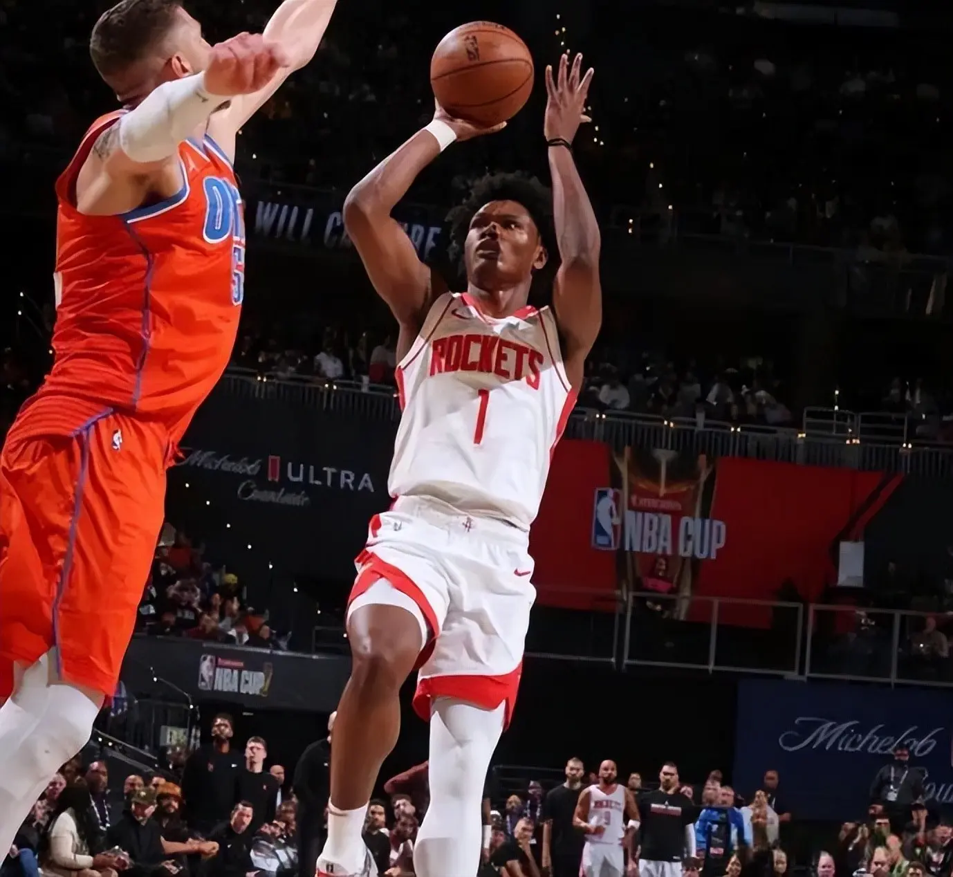 两场比赛下来,火箭队的谢泼德一共轰下了32分,这还是在替补席上取得的成绩。他三分球两场比赛一共13次出手命中8球。最近两场比赛,谢泼德在1号位上的表现令人眼前一亮。甚至火箭队的主帅乌度卡和巨星杜兰特都亲自点名谢泼德,杜兰特还特意在自己的社交媒体上晒出了谢泼德投进三分后的庆祝照片,可想而知这位37岁的老将巨星有多么欣赏21岁的射手谢泼德。
